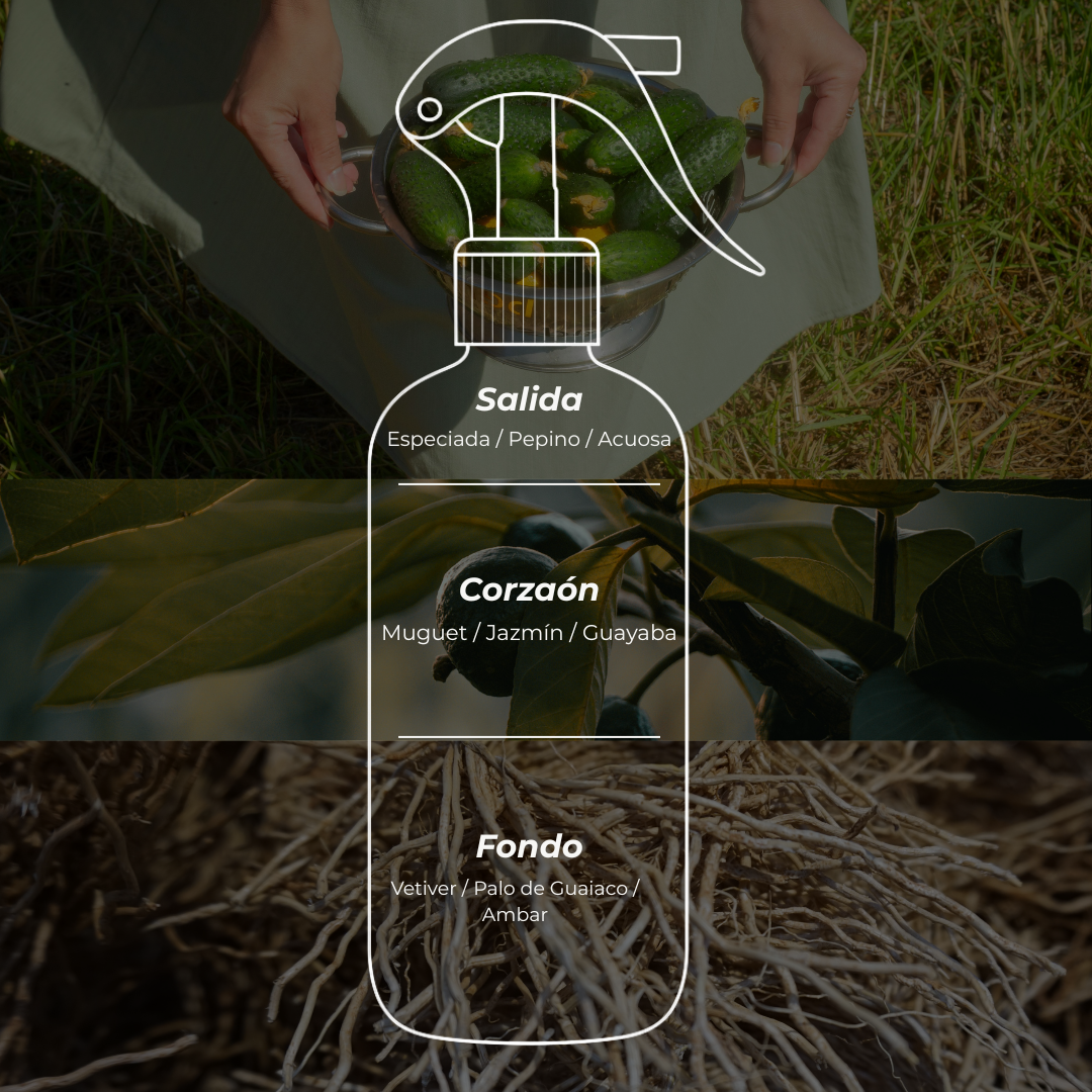 - Fondo: Vetiver / Palo de Guaiaco / Ambarada
